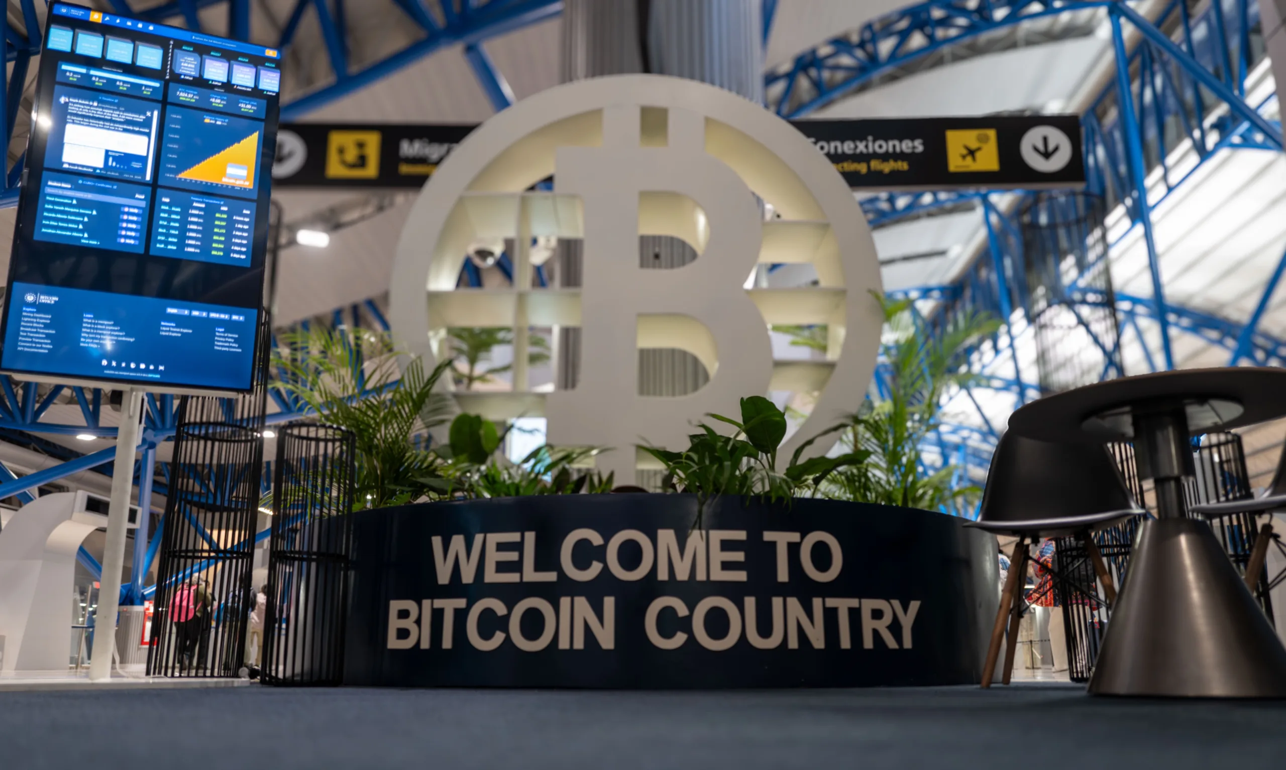 A estrutura exibe o símbolo do bitcoin em destaque e integra painéis com informações educativas, conectando a experiência dos visitantes à política adotada pelo governo nos últimos anos. A iniciativa faz parte de uma estratégia mais ampla para associar o bitcoin não apenas à economia, mas também à cultura e à imagem institucional do país.